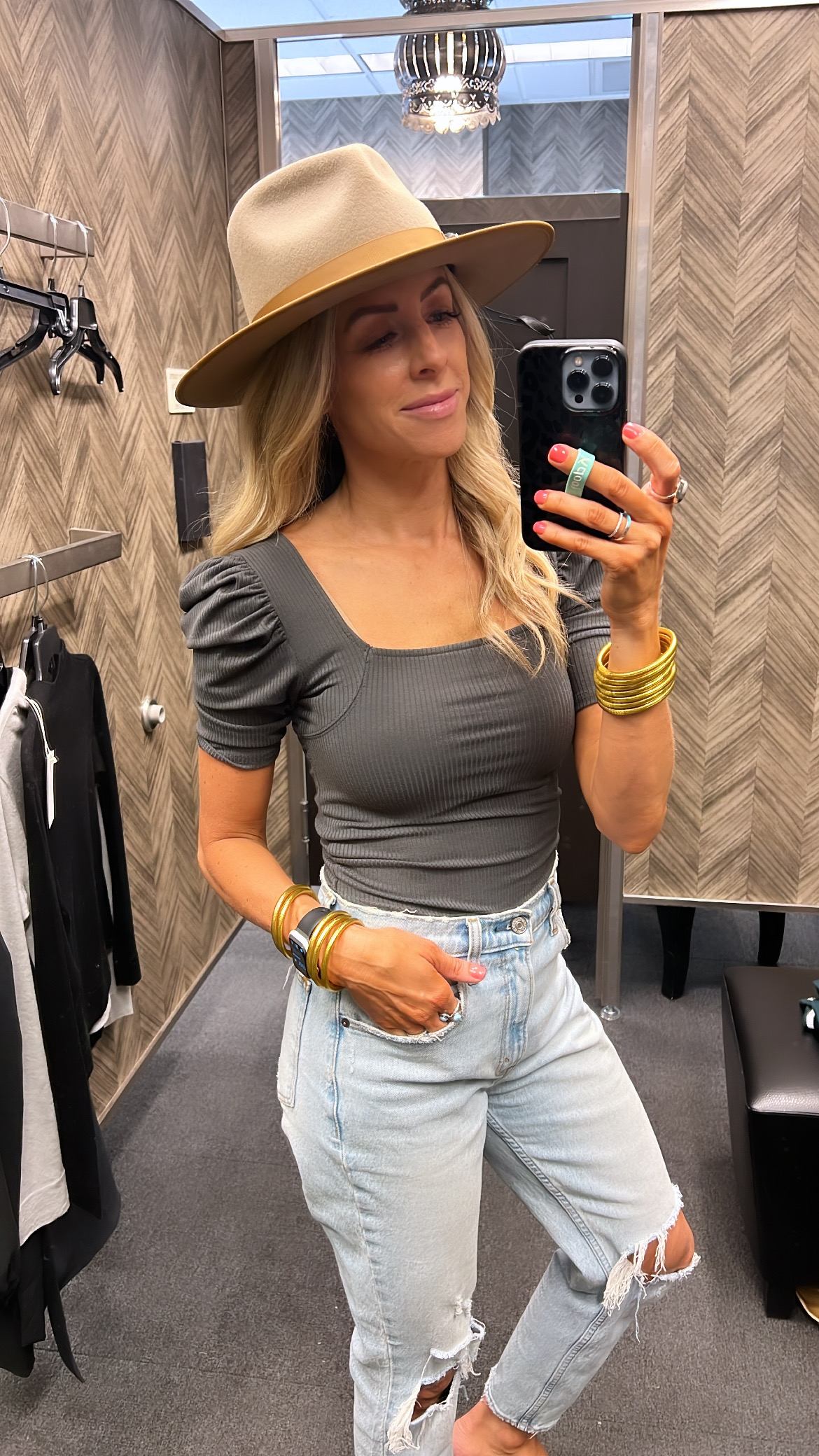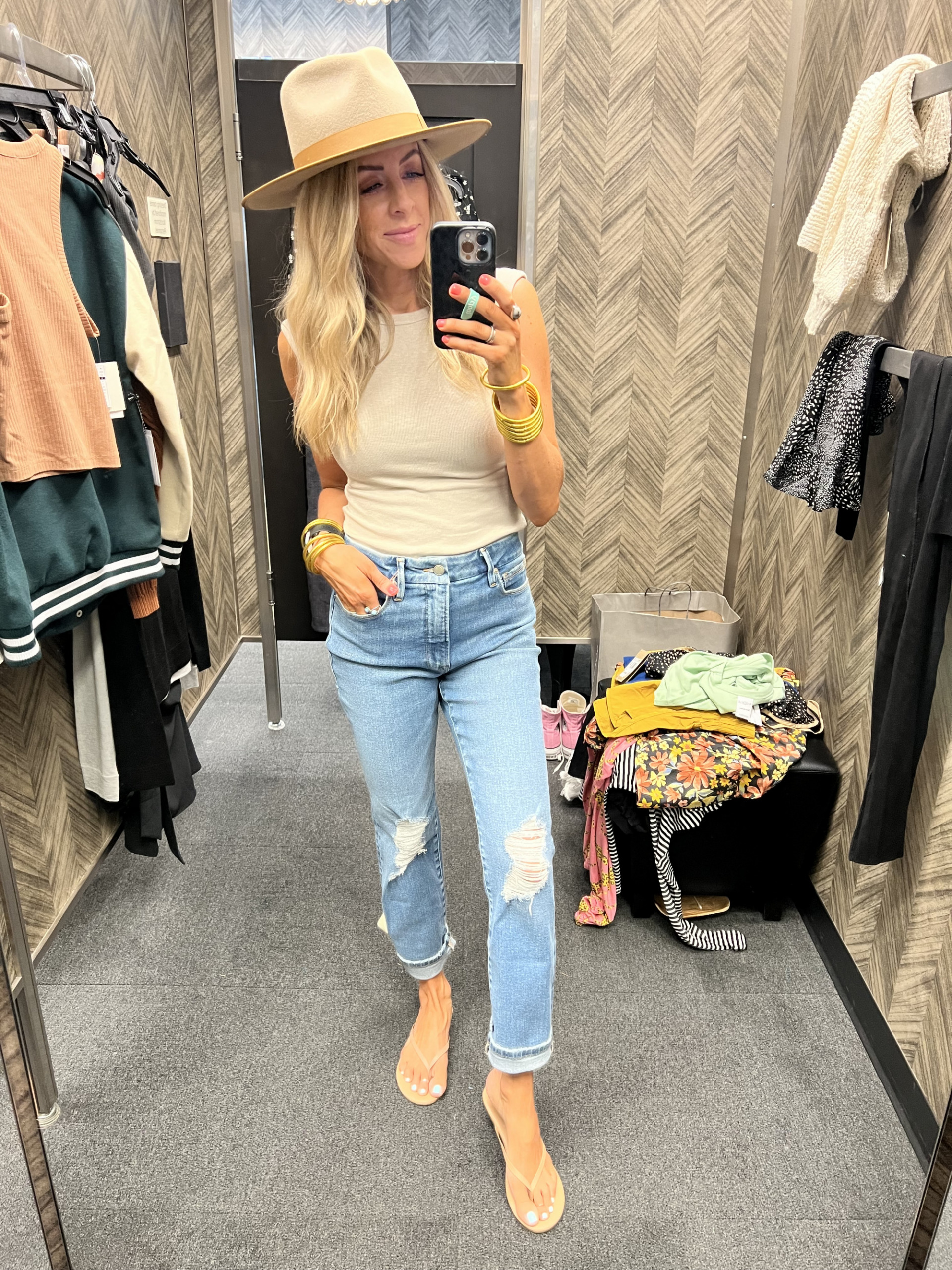 top + jeans (N SALE ITEMS) + hat + bracelets