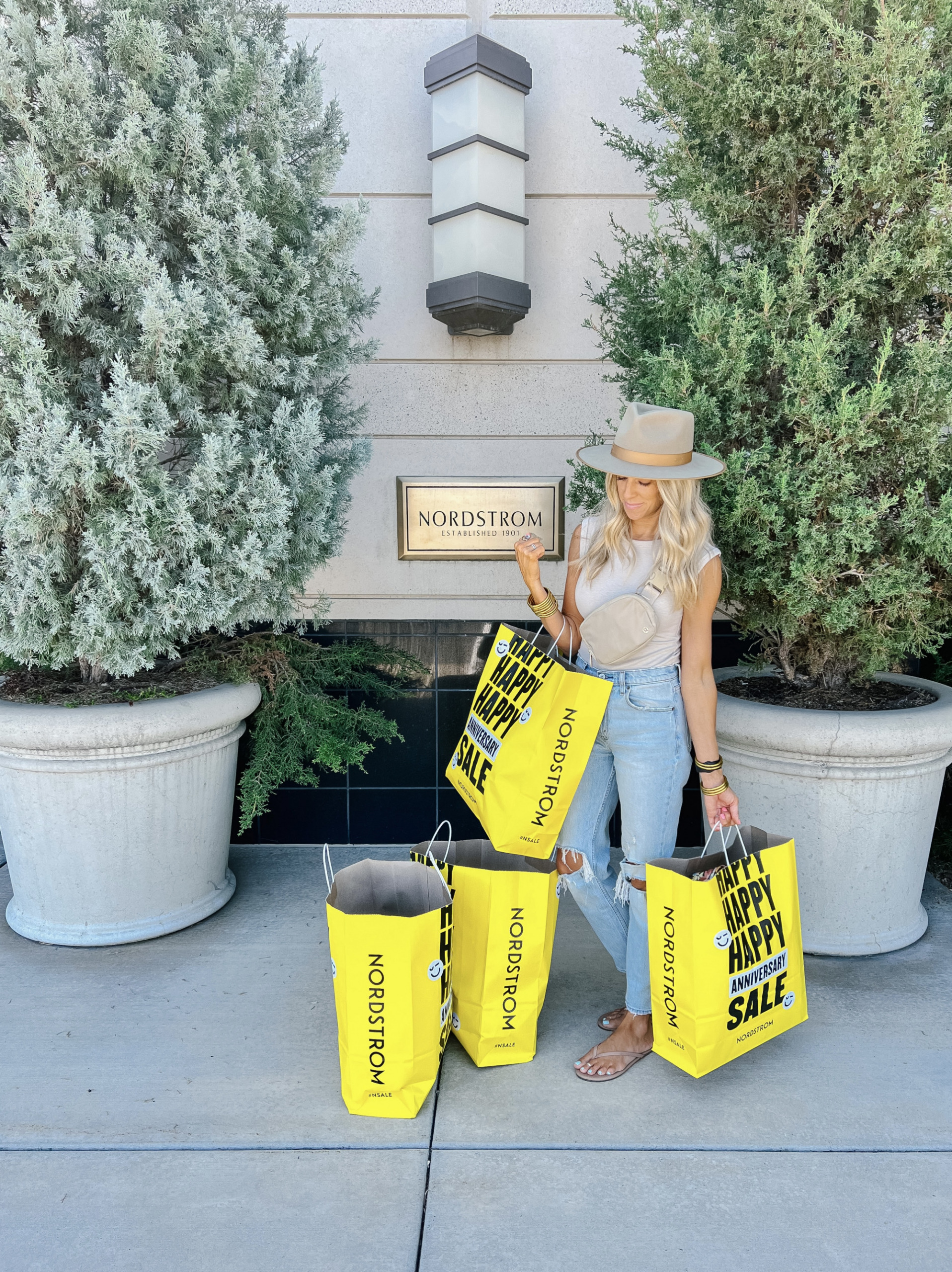 The Nordstrom Anniversary Sale is officially here!!! I ran over to my local Nordstrom, with Hunter and we grabbed all my top picks and hit the dressing room for a try-on haul. I’ve included all the sizing details just for you, because I know how much that always helps me!! My favorites this year were for sure beauty, and closet staples… Because they can always be added to anything in your closet. But I’ve included a few more favorite finds too! Keep reading below for sizing details and a full dressing room round up!