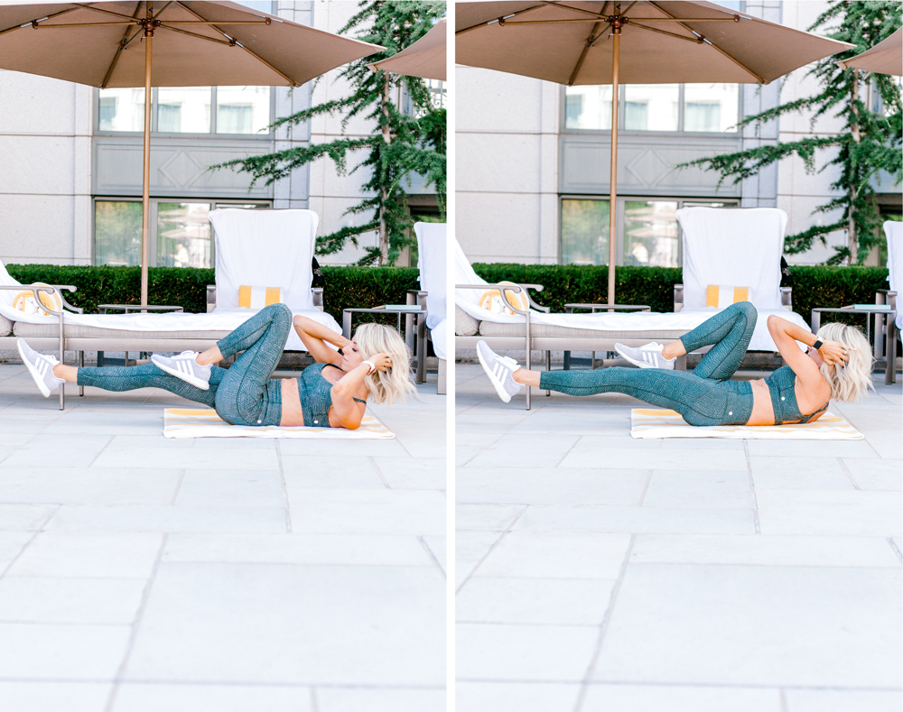 One thing I’ve started doing is following a few different fitness accounts over on Instagram. As I see them do tutorials for workouts I love, I will screenshot or save the posts. Then when I am stuck at home to workout, or traveling, I know I have some great options without having to search through a million options on youtube! So since I’ve been traveling so much lately, and with the crazy inconsistency of our schedule, today I wanted to share 5 Travel Friendly Workout Moves I l love, using zero equipment, that are perfect for hotels, grandma’s house, and anywhere in between!