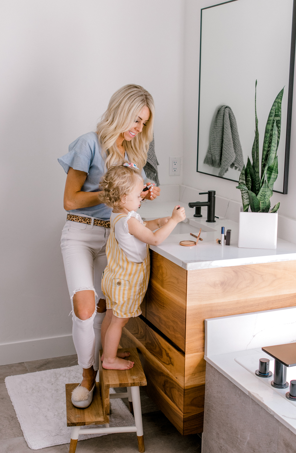 Along with the foundation above, they recommended this primer. I’ve used a few primers before and wasn’t too thrilled with the results, so I went into this one thinking it wasn’t really necessary. You guys, it is AMAZING. The best way I can describe it is that it wakes you up! It brightens and evens out your skin tone helping mask those tired mama eyes and minimizes your pores as well. Basically gives you the brightest prettiest clean slate to work with! Loving it!