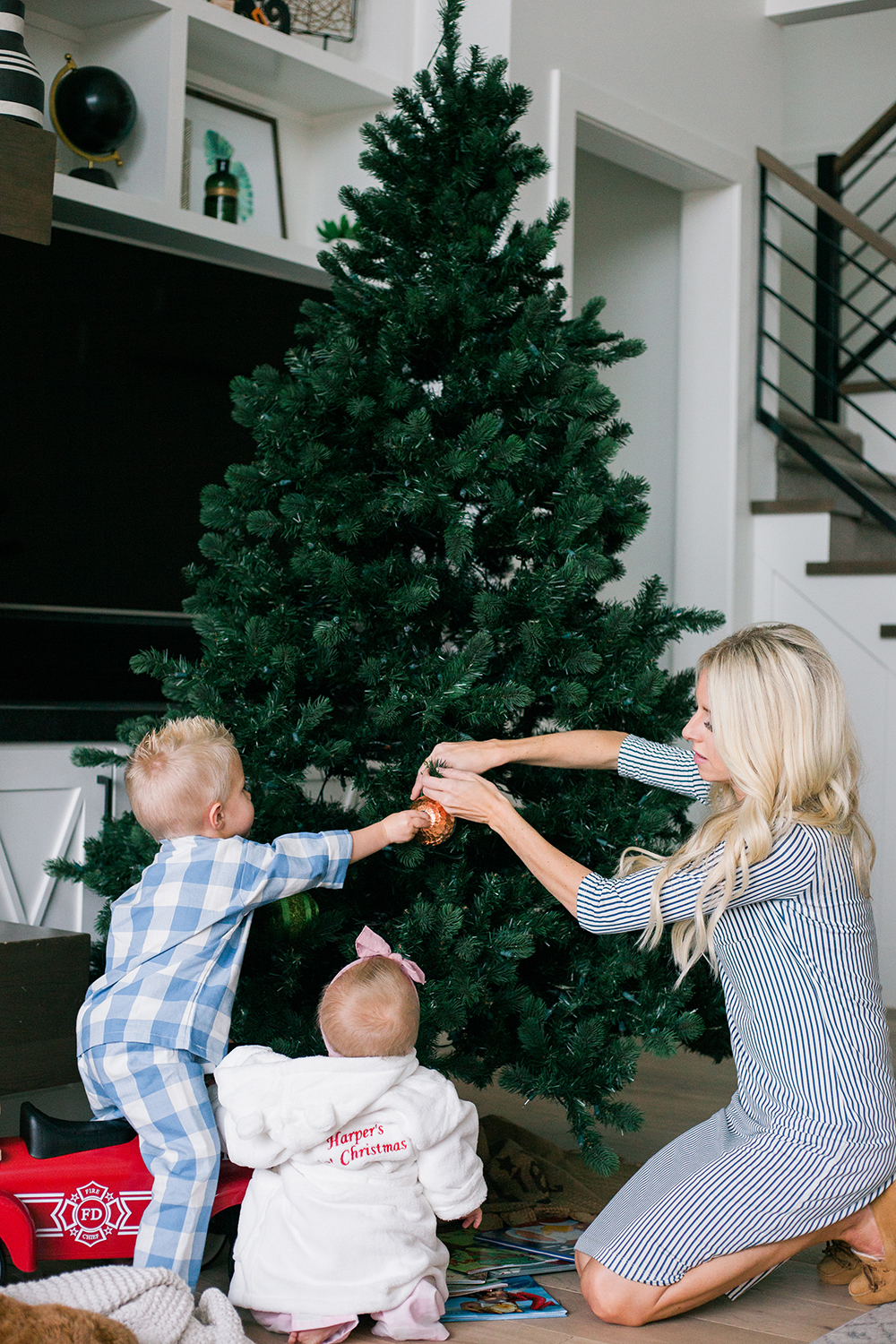 This one is definitely my favorite and something I think is so special! I like to try and find an ornament that mentions “First Christmas” or their name so it has special meaning. My people love to find their ornaments every year and ask me questions about when they were tiny. Since this will be our first Christmas in our new house, we want to start some new traditions too! We will have room for 2 trees now, so we thought it would be fun to give the little people a new ornament every year, and let them have their own tree in the basement that they can start to fill up with their ornaments! It will be fun to pick out ornaments that go with their different personalities and likes, and I know they will LOVE finding them every year.