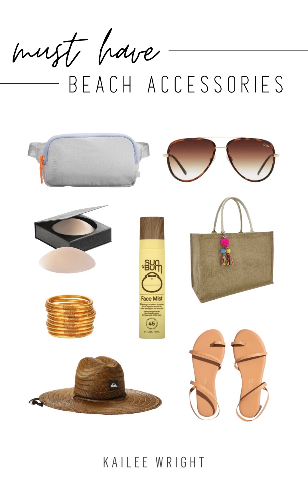 Now let’s talk accessories! Grabbing the right accessories can not only simplify your packing on the plane/car, but also simplify what you are hauling out to the beach daily! And we all know if kids are involved, you are already loading a lot!!