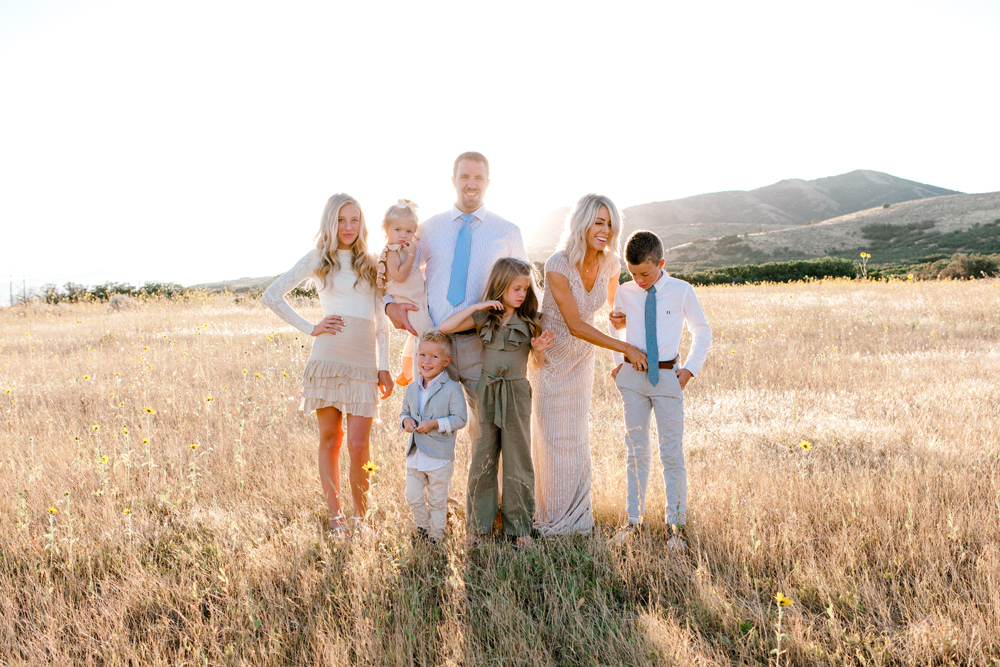 Fall is making its way into the air here in Northern Utah. Fall screams cozy sweaters, halloween, and for a lot of us, the dreaded Family Pictures!!! Haha! I think just about everyone can agree that family pictures bring out allll the emotions. Whether it is the stress of outfit planning, the toddler (or husband) tantrum, or even feeling a little sentimental, they are full of emotions and can be a challenge, especially with a lot of people to coordinate. You typically just see our final “perfect” product at the end here, so today I wanted to do something a little different and show you the real life behind the scenes of getting family pics with us + I’m sharing a few tips and tricks from lots of years of practice to help your family pictures go a little smoother!