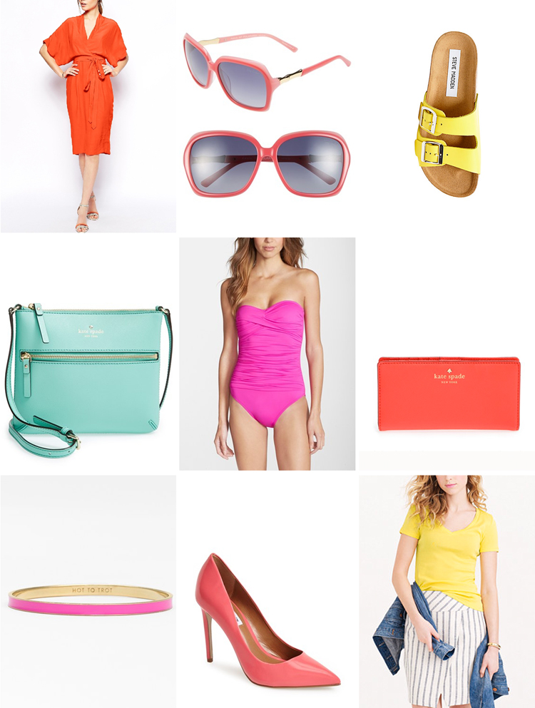dress | sunglasses | sandals | purse | swimsuit | wallet | bracelet | heels | v-neck tee