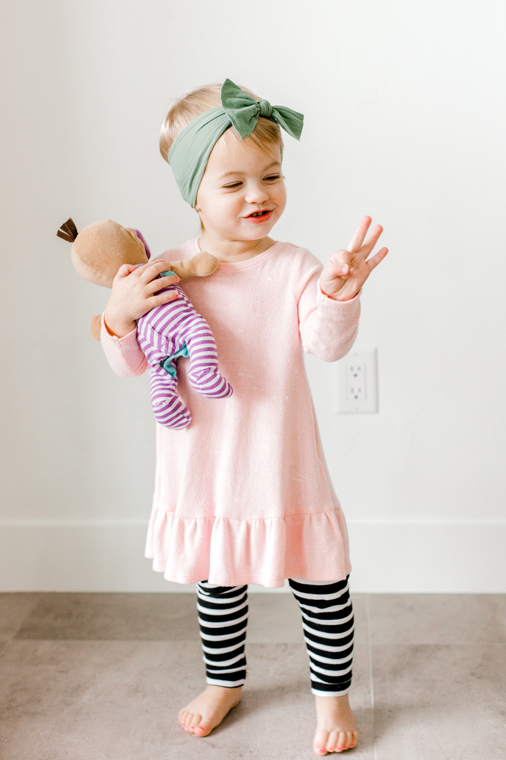 - LOVES baby dolls and takes hers with her everywhere! She loves to carry it in her little solly wrap, tuck it in for naps, and feed it. My mom got her a little doll swing for her birthday, and I don’t think I’ve ever seen her so happy. If you saw her open it on my stories, you saw that look in her eye. It was so so sweet and she hasn’t put it down since!