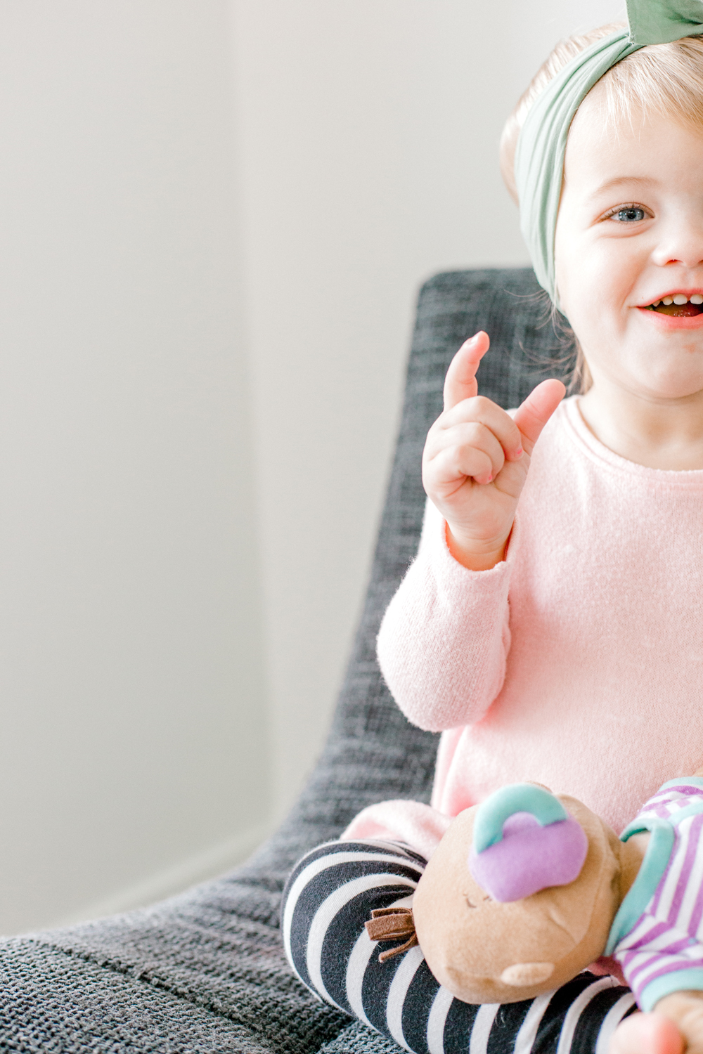 - Is TALKING a ton and loves to copy what any of us are saying. She can say our names in the cutest little voice and I could listen to her all day.