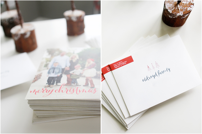 Sending holiday cards is one of my favorite Christmas traditions. I seriously love stuffing + licking + addressing + whole works…it just gets me all excited for the holidays! After school my kids will run to the mailbox and can’t wait to see all holiday cards start showing up in the mail. I love to display them on the wall in my kitchen and I do save them each year + turn them into a little book to look back on all the fun years of cards we have received.