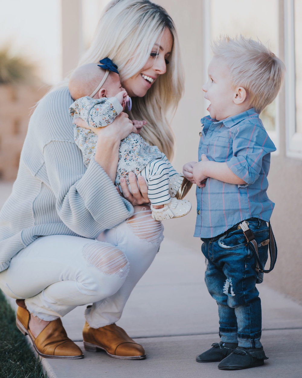 - Moccs: It is no secret these are a favorite! The variety of colors + patterns is endless. I love that they are soft on your baby’s skin but still keep them warm and cozy. And bonus, they are so easy to get on their tiny feet!