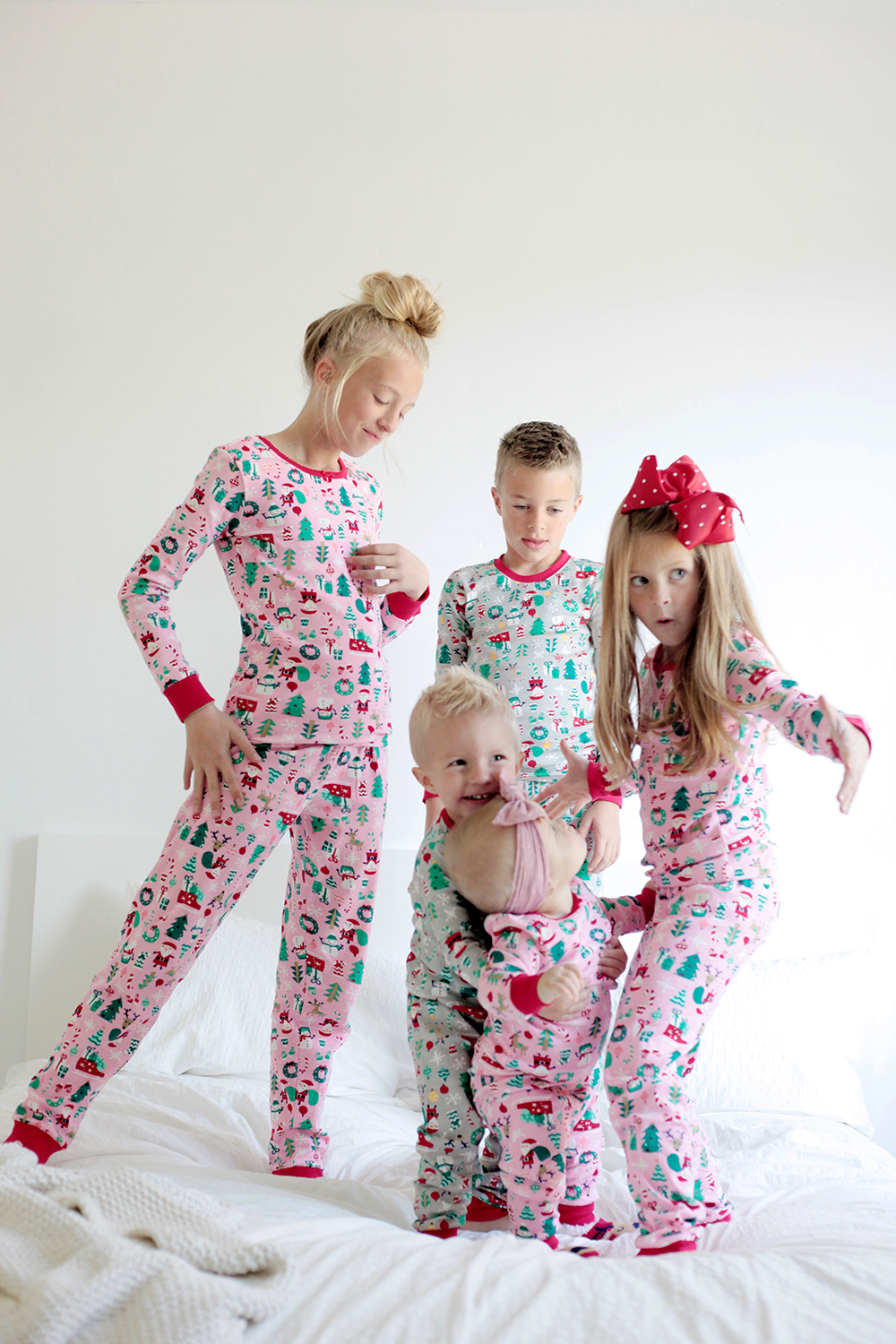 When coming up with a tradition, I wanted it to be something timeless + practical. I really wanted it to be something simple enough that we could continue to do it for years to come. But exciting for all of us to look forward to too. I loved the Christmas pajama thing on Christmas Eve. But it always bothered me that you had to wait until Christmas Eve, to wear your holiday pajamas. Plus within 24 hrs the holiday was over. So I decided to put a little twist on it for my people. Every year on Thanksgiving night, the little people get to open their new Christmas pajamas, so we can enjoy them all December long!