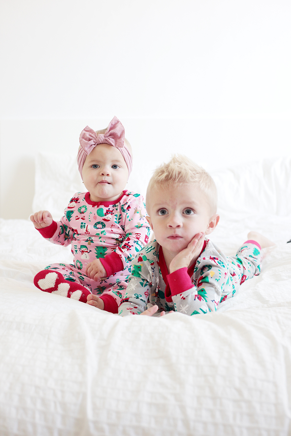 I love any chance I can get to make my people match, and that definitely applies to this pajama tradition. As Hunter has gotten older, and our age range has grown, it’s been harder to find coordinating picks that work. So I was thrilled when I came across Gymboree’s Holiday Collection. They have pajamas as small as newborn all the way up to a size 12 for both boys + girls that go together, so I could grab all of them in once place. I also love that they aren’t the cheesy options you find in a lot of holiday pajamas. I like to keep them fun for the kids, but love keeping it to a simple pattern and Gymboree’s options are exactly that!