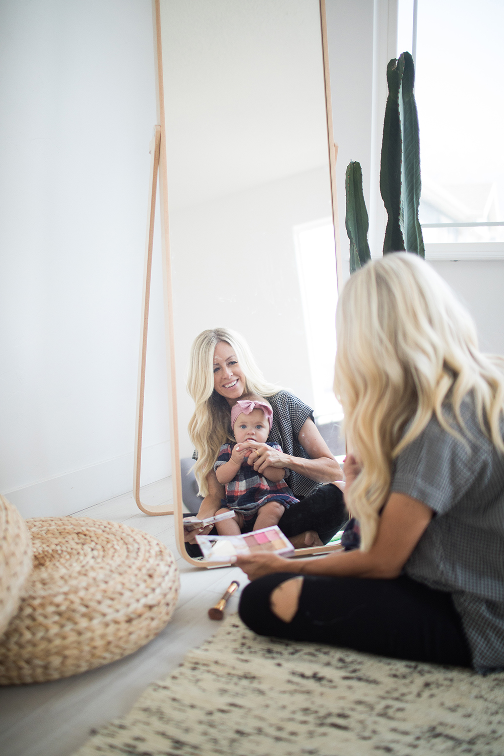 The thing I love the most about Maskcara is that it seriously only takes me 5 minutes to put it on, from start to finish. (I’m sharing an Instagram Story of how I do my make up in the car!) With our crazy schedule + 2 babies that are always wanting to be held in the mornings, this is huge for me! Five minutes is completely doable, and then I can head into my day feeling put together! It is amazing to me how much more focused I am and I can accomplish when I take the time to get ready for the day.