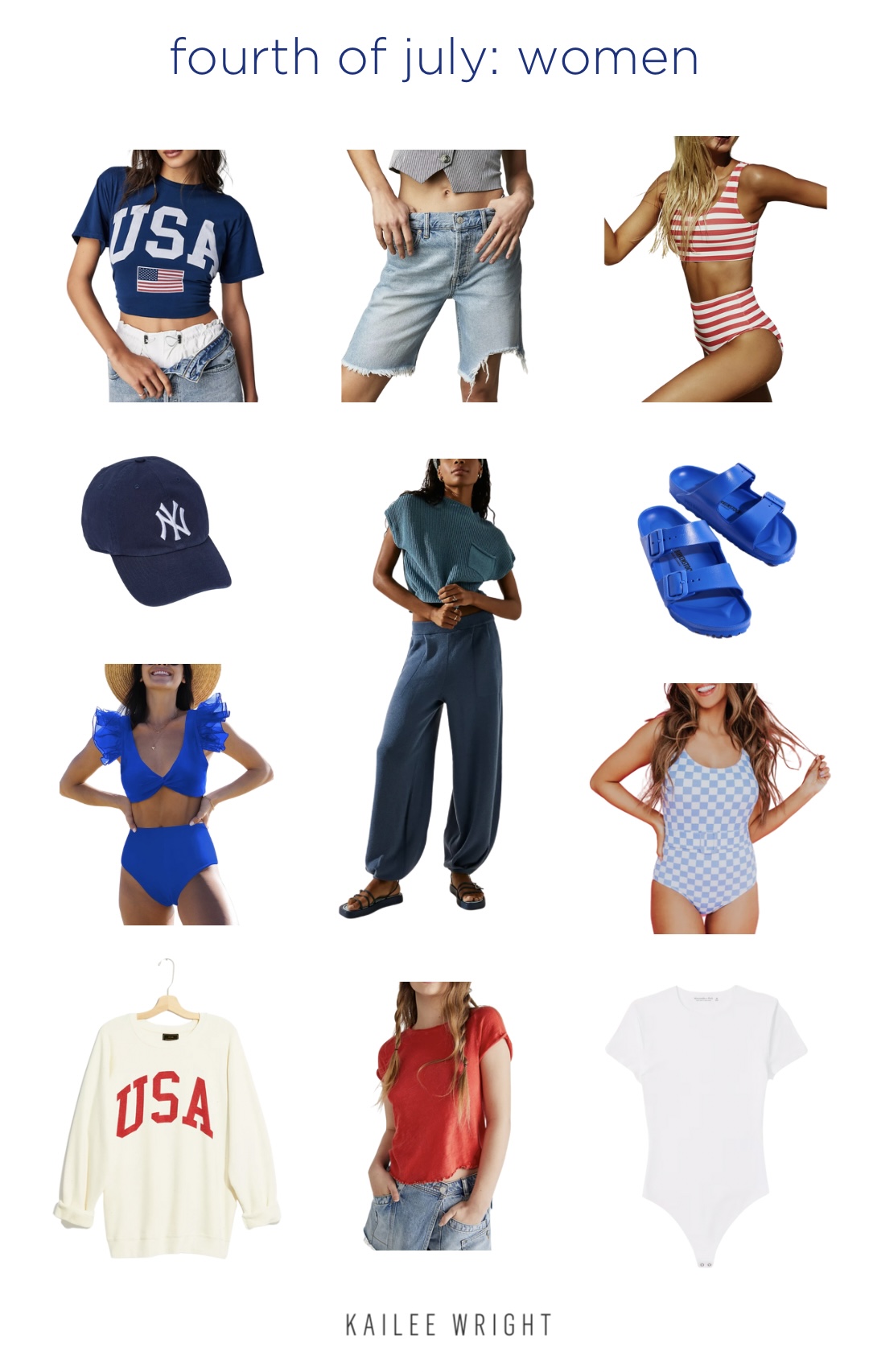 usa tee + shorts + striped swimsuit + baseball cap + sweater set + blue birks + blue swimsuit + checkered swimsuit + usa crewneck + red tee + white bodysuit