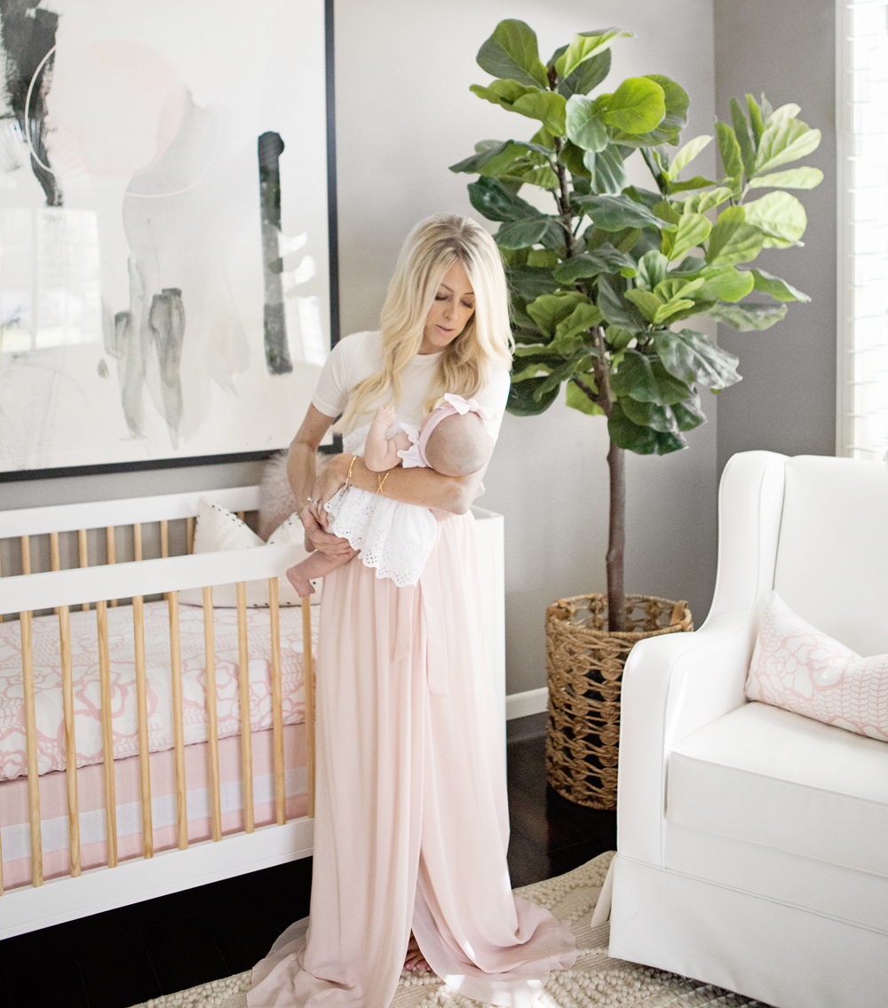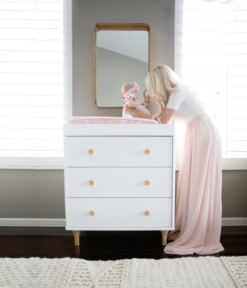 Since our house is very small, we went for a more simple + clean look for Harper’s Nursery. That being said, we also knew we would have more room in the new house so we adjusted a bit, knowing the over all look in the new house will be perfect!! I just love how it all came together!! Annalisa/Oilo Studio was so amazing at helping me make the vision of my last baby’s nursery come together and I couldn’t have done it without them!! Plus, I can’t express how much I love how it turned out! Seriously, aren’t baby rooms the funnest? I’ve linked allll the details below, but if you have any questions, leave them here!