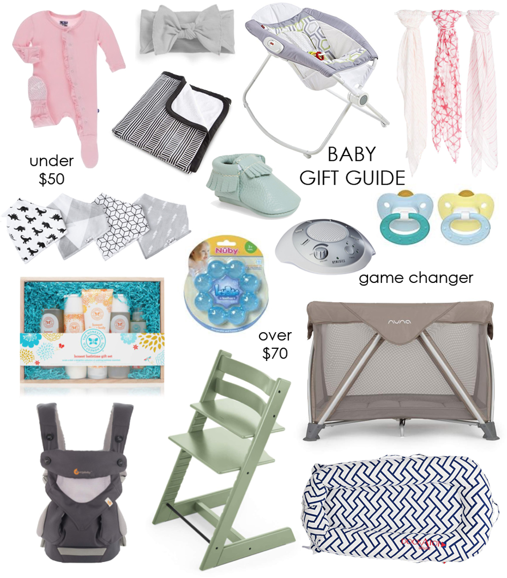 under $50 : jammies (kickee pants) | headband bows | cuddle blanket | rock n play | swaddle blankets | bandana bibs or here | freshly picked moccs | noise machine | binkies | honest company bath set | teething rings