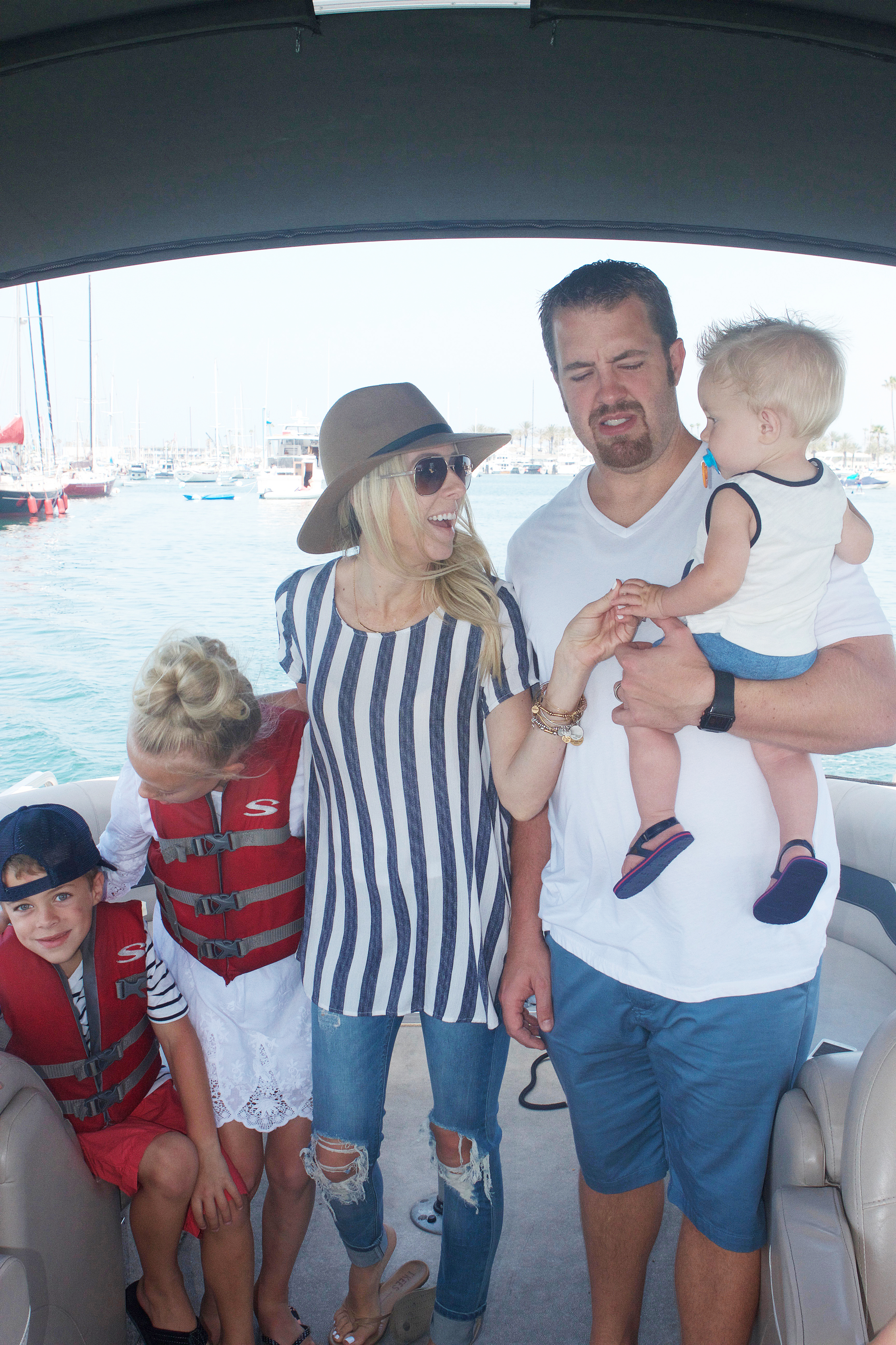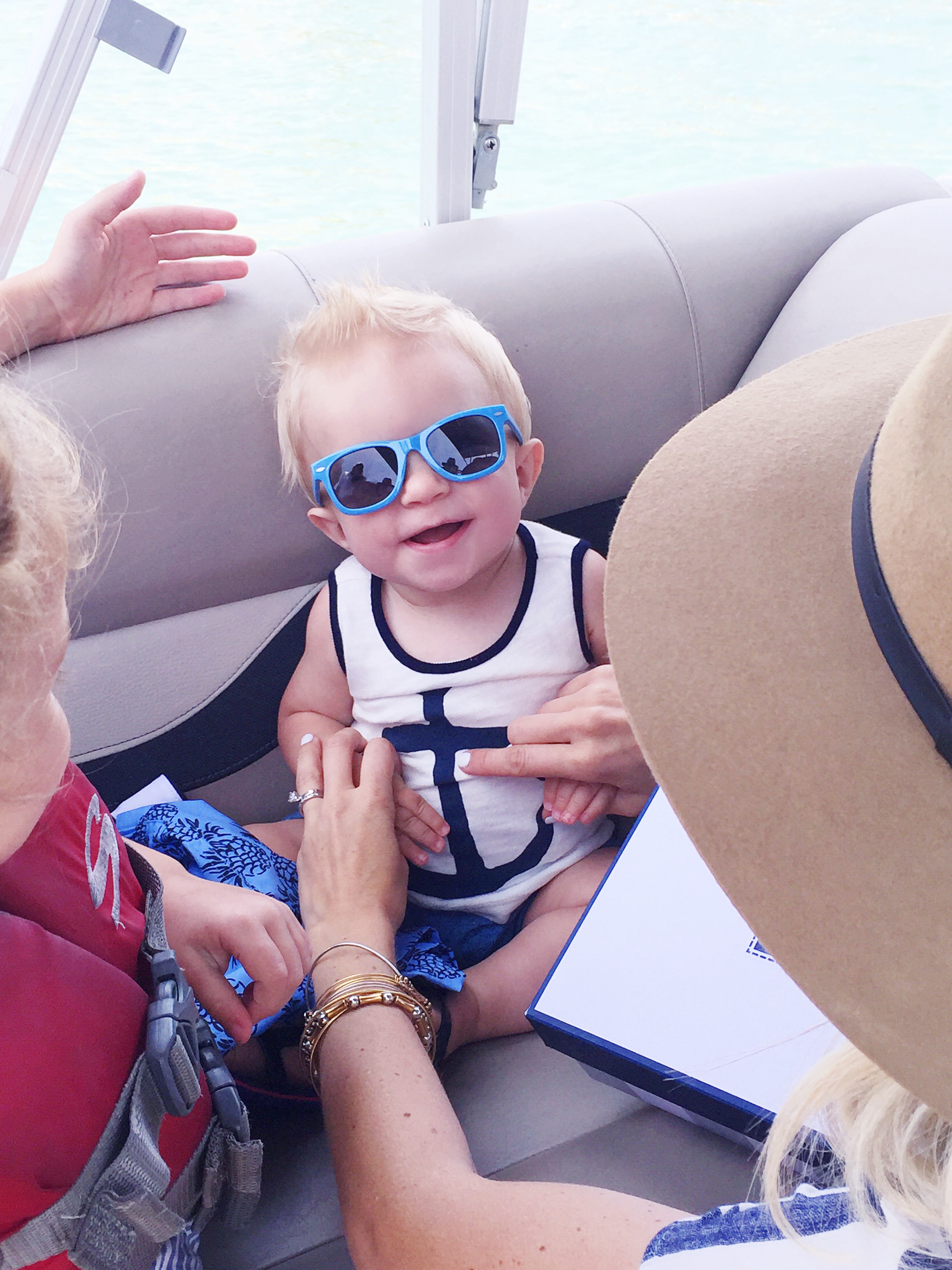 Earlier this month Houston turned ONE!! We still can’t believe that our baby is already a year old. We were lucky enough to have my whole family come down to Newport to celebrate his birthday! For his party, I wanted SIMPLE and no fuss!! We were already planning on doing some fun activities with my family so I decided to throw party in the middle of it all. We rented a boat and ordered lunch to go to make everything simple and also so I wouldn’t have to worry about prepping/cleaning or anything else. I went with a “Nautical” theme…because come on we were in Newport. I ordered Sprinkles Cupcakes and we enjoyed ourselves while we sailed around the harbor. We seriously had the best time and I loved every second of it!