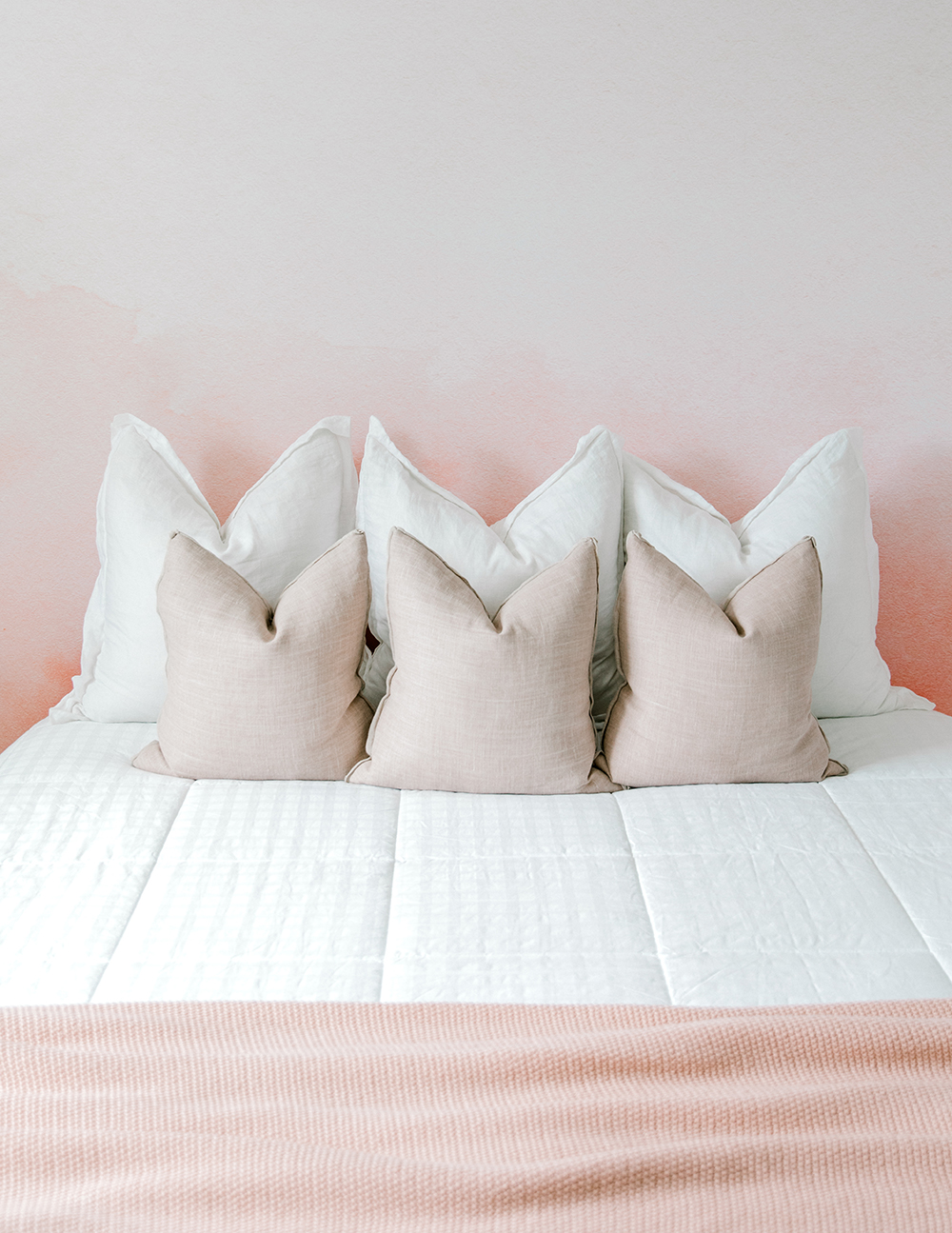 Everything else in the space we kept as it was originally in the guest room, with a few more small pops of pink like this pillow and vase. I love that we were able to transform the space, but not have to have a big budget. We hope you love it too!