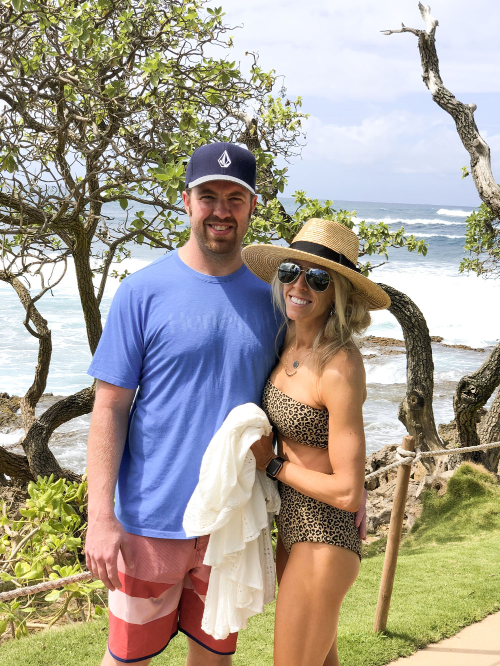 As most of you know, Joe and I just got back from a week long anniversary getaway in Hawaii! To say it was dreamy is an understatement. With the crazy hours he has been working, and the non-stop schedules for the little people, we hadn’t realized how much we were missing our “us” time. I shared quite a bit about our trip over on Instagram, and have had SO many questions on everything from swim suits, hikes, food, and where we stayed. Since I didn’t want to overwhelm you, I’ve broken it down into two posts! Next week I’ll be sharing our top things to do, see, and eat in Oahu, so today I’m covering inside my suitcase! All my favorite swim suits, cover ups, hiking gear, and beach essentials!