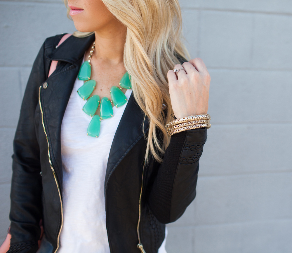 jacket | tee | favorite jeans | purse | sunnies | necklace | bracelets | nail polish