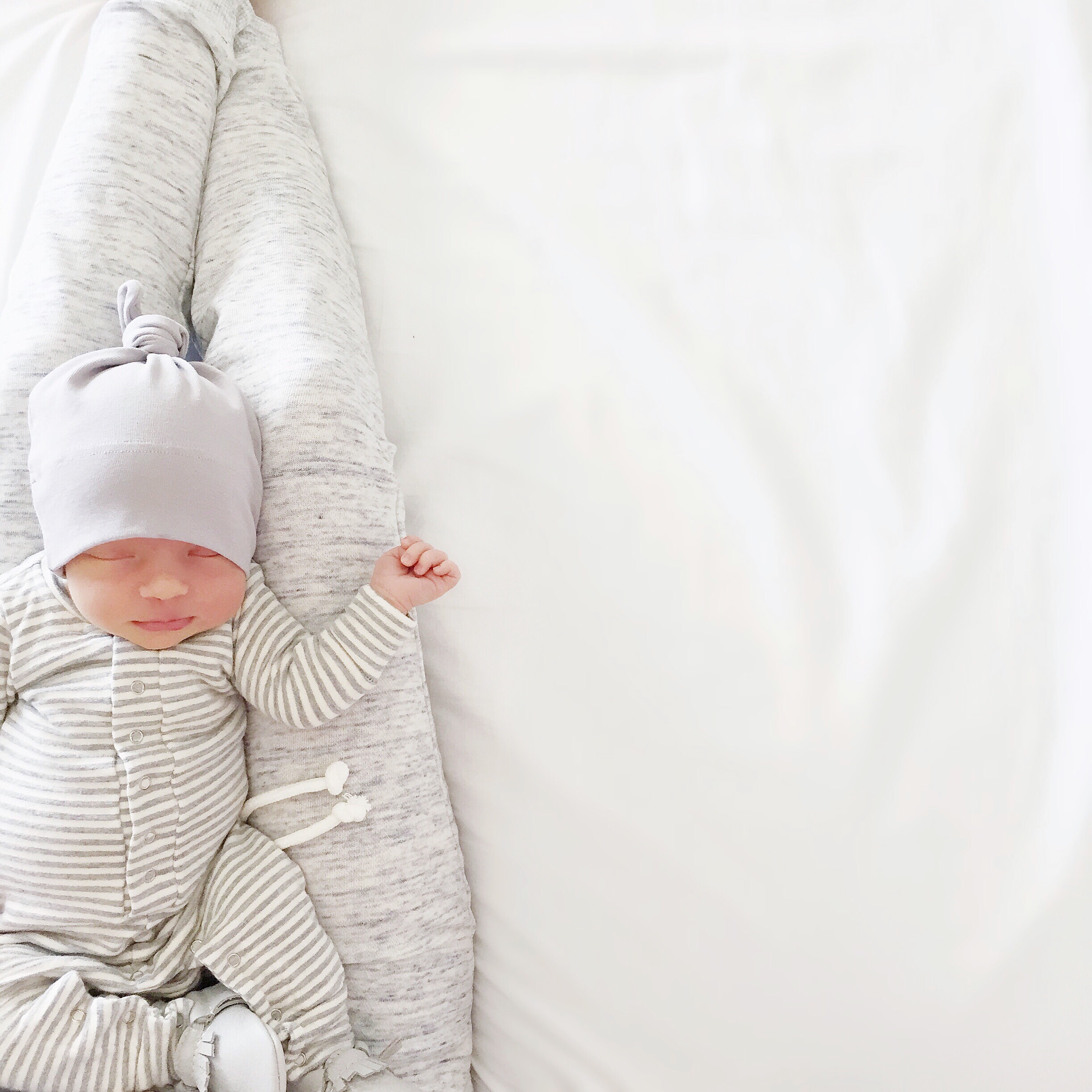 onesie (similar) | moccs | baby beanie (similar) | jogger pants