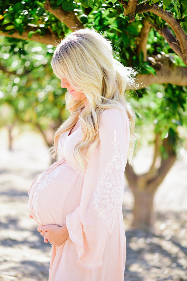 You look gorgeous! What size is your dress? I’m 7 mos along, 5’2″, and currently 134 lbs. I’ve been wearing maternity xs/small. Need to know what size I should order the dress in. Any suggestions?