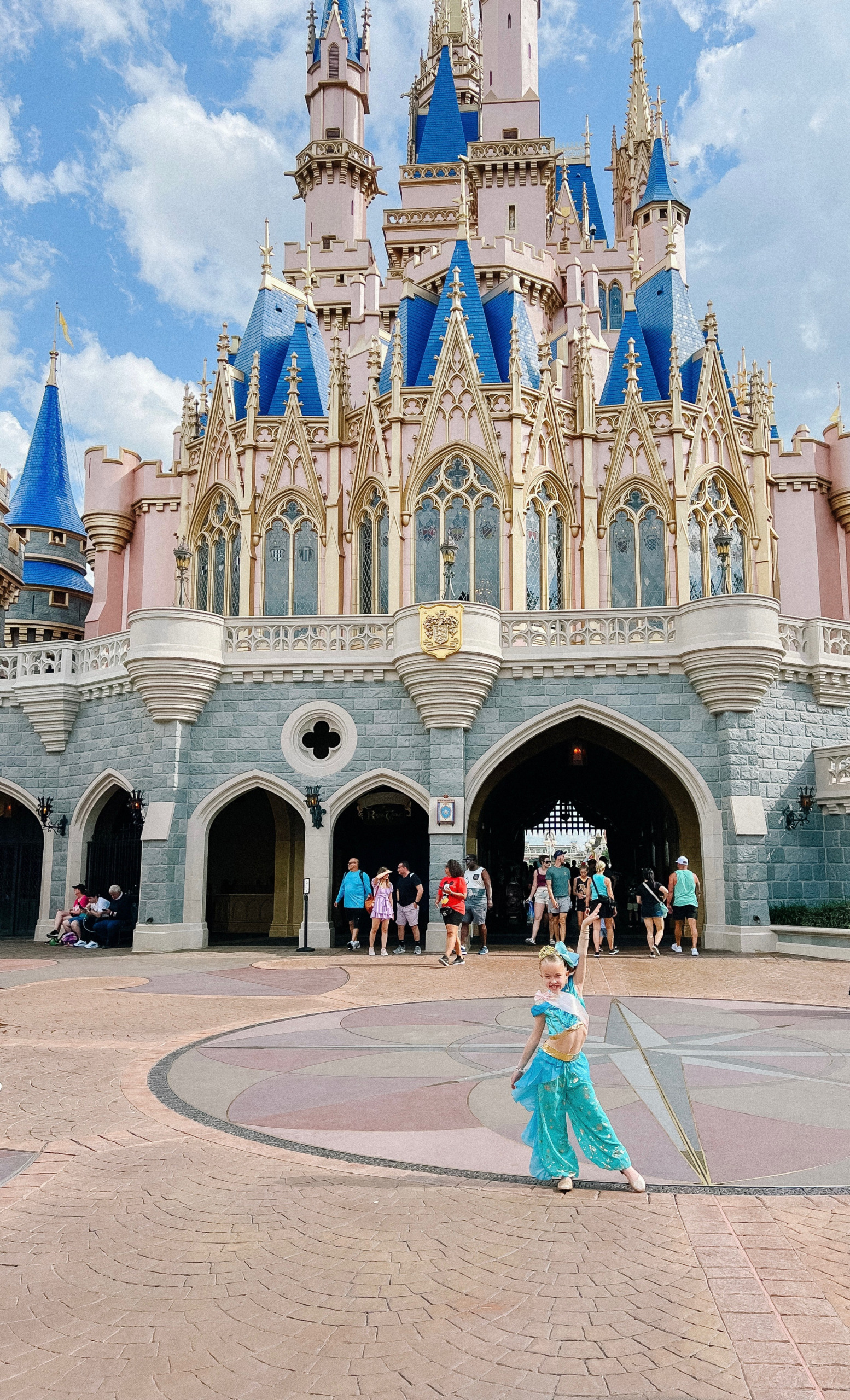 The trip was an absolute blast, but also completely exhausting! We went to 3 of the Disney parks- Animal Kingdom, Magic Kingdom, and EPCOT! Thank you for everyone’s recommendations. I’m not a huge Disney fan, but we really had so much fun together. We found out on this trip that Harper is not a huge roller coaster fan! So while the big girls ended up doing the big rides, Harper and I ended up at the Bibbidi Bobbidi Boutique. She got her makeup and hair done and got to wear her Jasmine costume! She said this was the best day of her entire life! It was definitely a core memory for me too. If you have the chance, I highly highly recommend doing this with your daughters!