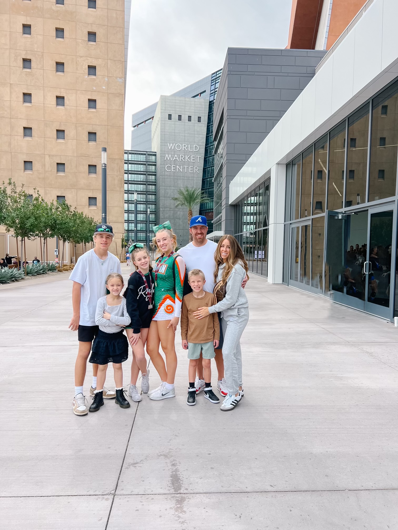 I’m sure most of you saw, but we were in Vegas last weekend for Hayden’s cheer competition and you want to know the best part?! Hunter competed on Hayden’s cheer squad too! She was asked to fill in a few weeks ago and has now secured a spot on the team. It was such a fun experience to watch them be on a team together because that probably won’t happen again! Their team did the best they’ve ever done and scored the highest they’ve ever scored! They also got a bid for the regional summit!!! It’s not nationals, but it’s a big competition that you have to get a bid for. Hunter has been such an encouragement and motivator on the team!
