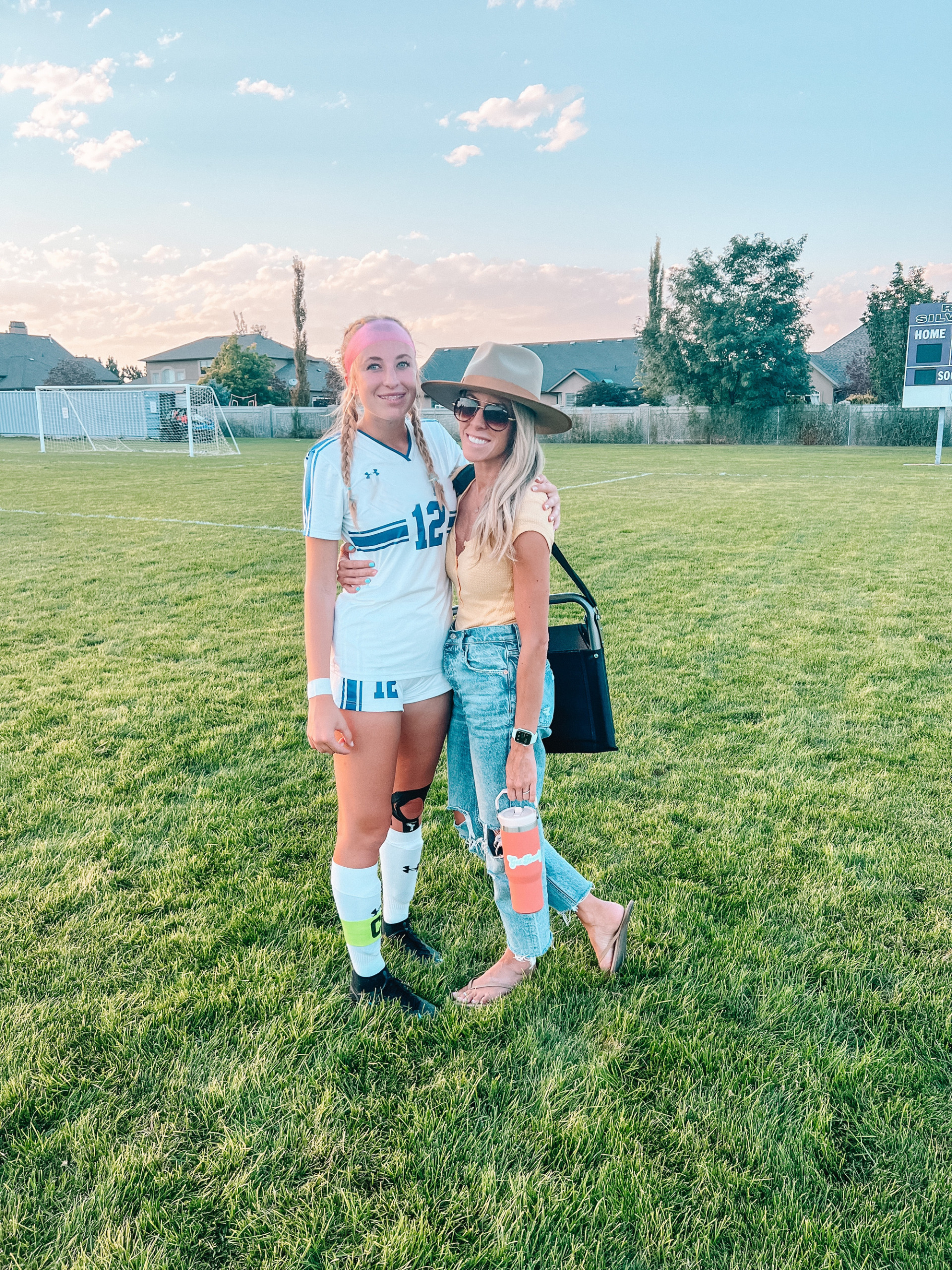 Hunter went to her first high school dance! I can’t believe she’s this old. I vividly remember my first dance as a sophomore in high school, my date was Joe’s best friend! Haha! Here is the link to Hunter’s dress, I’ve had lots of questions about it. Hunter has also been doing great this season for soccer! I love love love watching her play and do what she loves.
