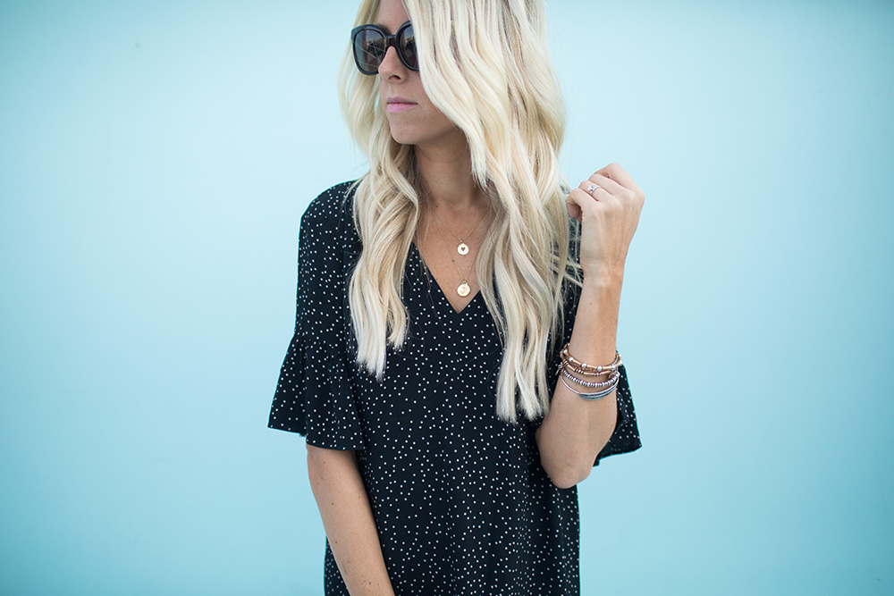It’s no surprise that I love a good dress!! Especially one that’s simple, doesn’t have to be layered or have a tank underneath it because it’s too low you know what I mean?! I found this dress last week at the Nordstrom Anniversary Sale!! I love the simple hem line and the little ruffle detail is perfect. It’s super lightweight but not see-through and the perfect length!! (I’m wearing a size 4 for a little added length).