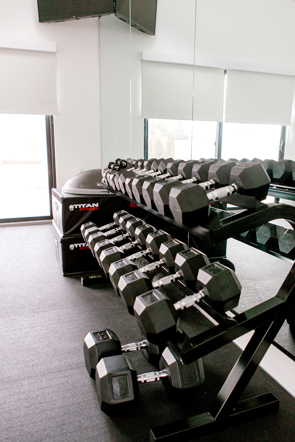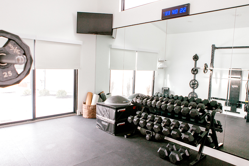 As most of you already know, we designed our own house plans. From how many shelves in every closet, to how much space we wanted in the bathrooms, we were very meticulous over allll the details. Our biggest goal was to have no wasted space. At the time we were designing, fitness wasn’t a huge priority to me. I was still more in the taking care of babies phase. Fitness just wasn’t at the top of my list. So fitting it in to our home wasn’t top priority either. But fast forward to now, and Health + Fitness has become a huge priority to Joe and I. We work out daily and crave that mental clarity and physical push. So we decided to add a home gym!