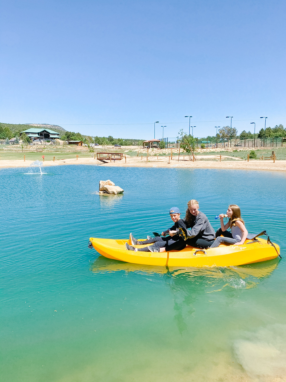 One of the no additional cost activity options was swimming and we loved it! They have 2 pools, 2 hot tubs, and 2 water slides that the kids thought were so fun. They swam and played for hours and loved it. It was nice to have a laid back option to have as a filler between the bigger adventures. I loved that around the pool they had showers and private dressing rooms so you are able to change right there. These are also accessible if you choose the camping options. They also have a little mini pond area where you can take kayaks out.