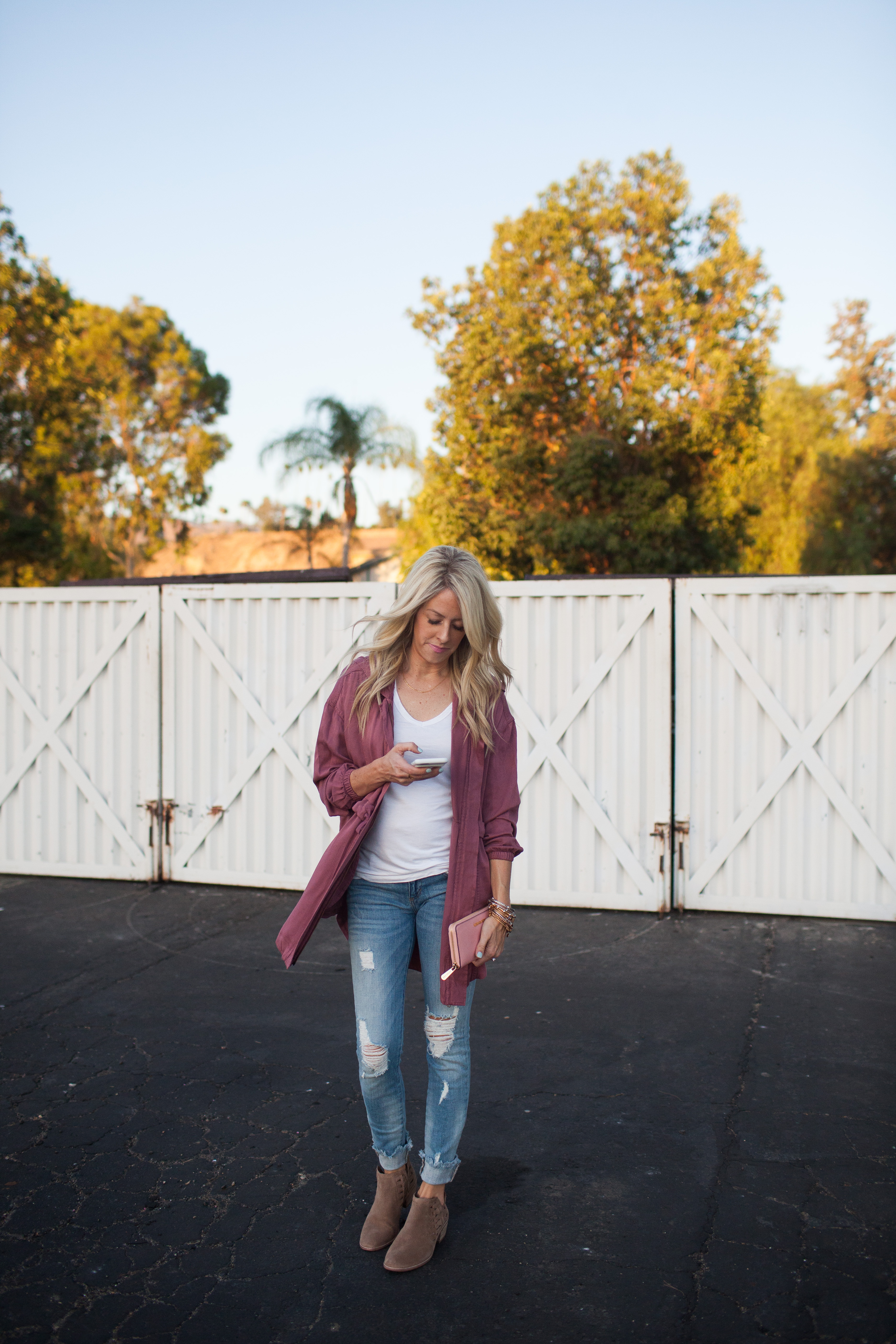 So everyone knows I love my go-to ‘momiform’ look of the basic t-shirt and jeans. What I love about your basic’s is that you can add anything to it to spice it up a bit. From a piece of statement jewelry, a bold jacket, or some sassy heels can change the look instantly. I loved adding a subtle pop of pink to my everyday momiform with this darling pink drawstring jacket. Purchasing just 2-3 great outerwear pieces (jackets) for the Fall can change up your basic staples without even trying!! I also have this lightweight jacket and pair it with everything from dresses to jeans. It just adds a little extra something to your look to make it a more fun and put together!