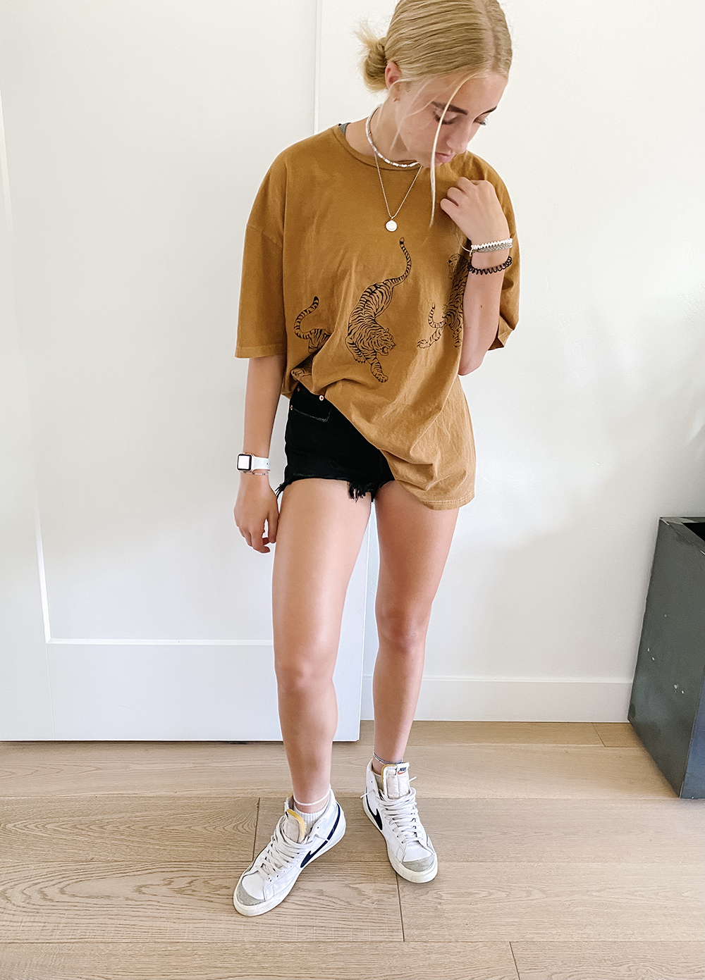 When it comes to clothes, especially tops, I’m really all about comfort and sticking to my style. I love hoodies, oversized graphic tees, crop tops and just good basics. They can all be pretty versatile and switched up between paired with sweats, jeans, shorts or whatever fits your style.