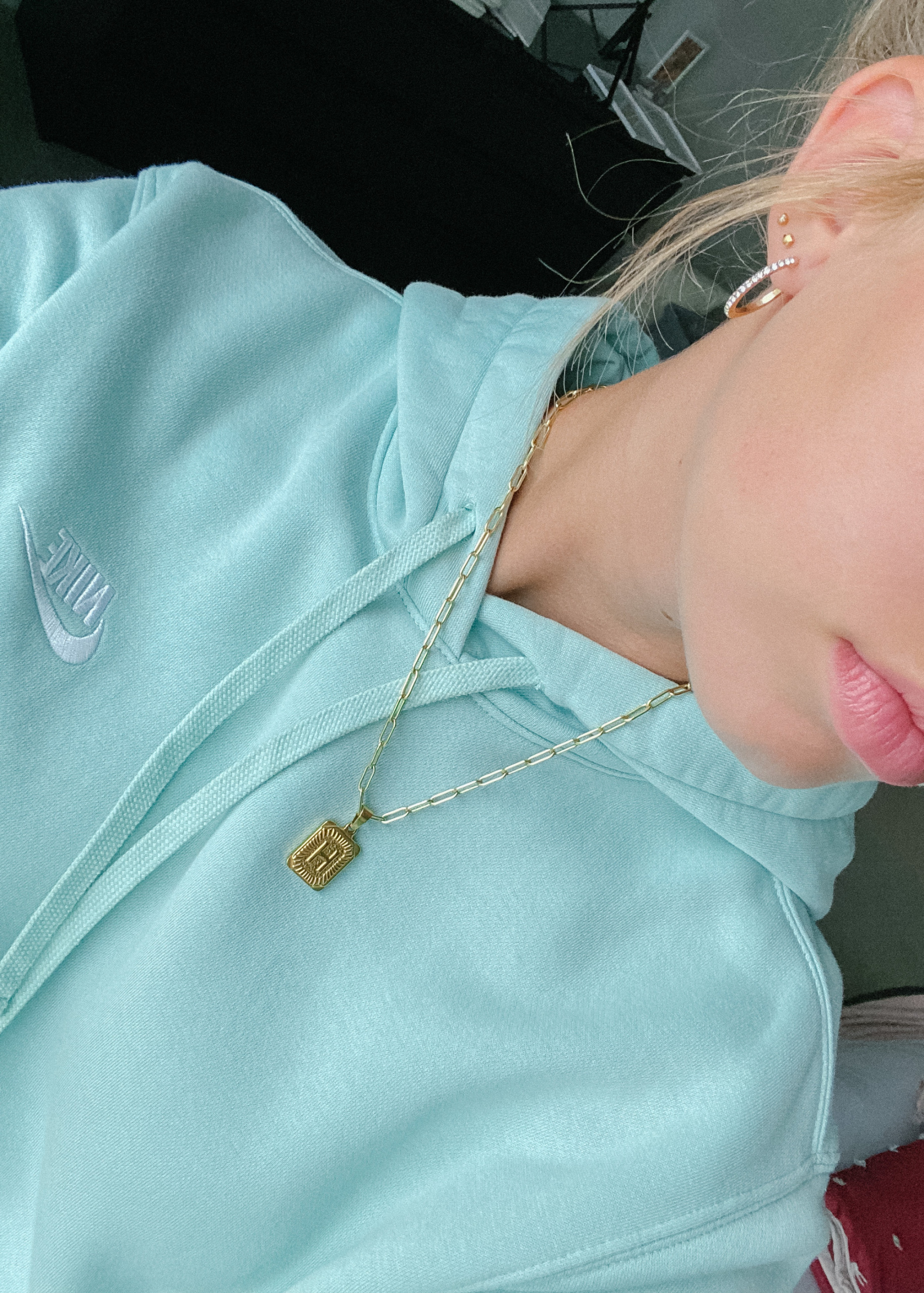 My go-to accessories are simple necklaces, bracelets, rings, and dainty gold hoops. My favorite accessory this summer was my $17 gold initial necklace from Amazon! I wore it with everything. See my other favorites below!