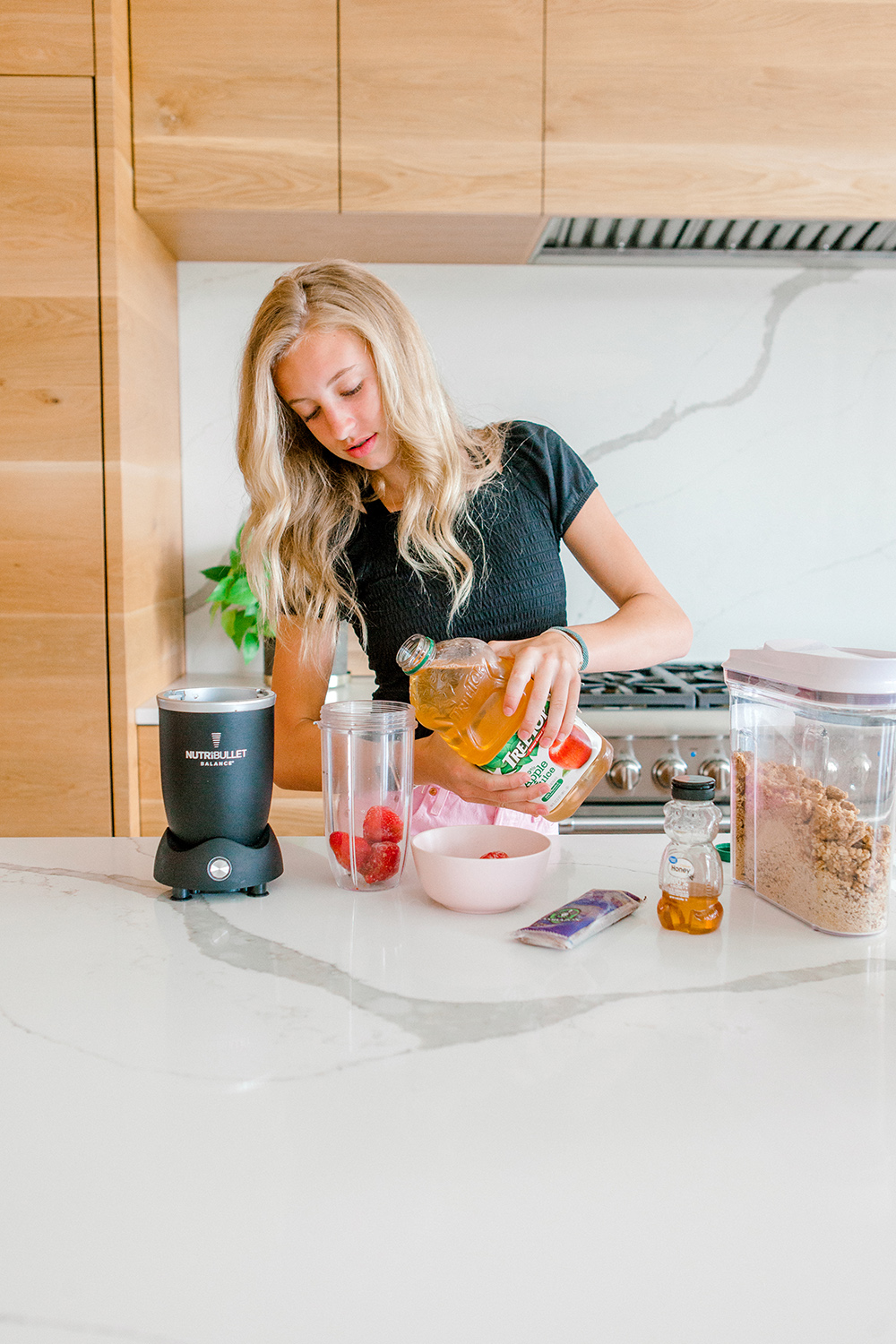 Hey Guys! Hunter here for a fun Teen Takeover! Ok, so is it just me or am I the only one that loves smoothies and açai bowls?! Açai bowls are my favorite!! I swear I could eat them every day for every meal if That is how much I love them! Shakes and Smoothies are for sure my Mom and I’s go to in the summer months, so I thought I would share how I make my acai bowl into a yummy smoothie.
