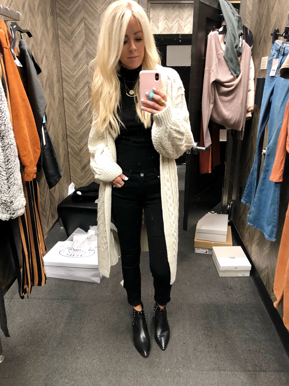 I didn’t see a link for the beautiful cream/off white cardigan. Do you have a link for it I can’t seem to find it and its to die for! xoxo love it! All the outfits look amazing on you.