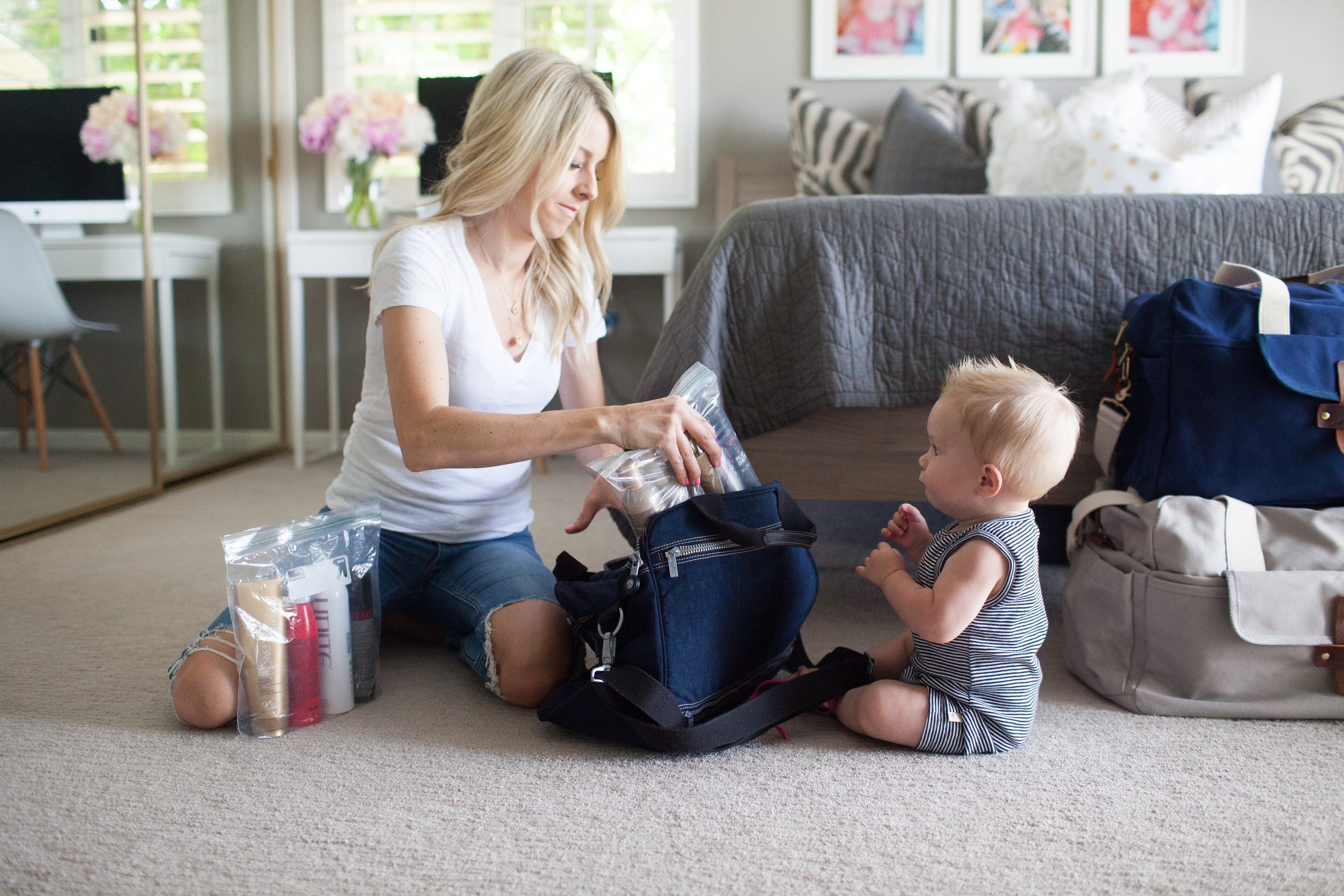 I also like to pack the baby’s stuff in separate little bags (because there is always so much to pack baby) It just makes it easier when trying to find items for him. For example: I’ll pack all of his pajama’s in one gallon ziplock bag, and then another with his shoes + socks, one for bibs and burp clothes, binky’s etc. It keeps his part of the suitcase/bag organized and I feel like I don’t end up losing all his tiny things everywhere.