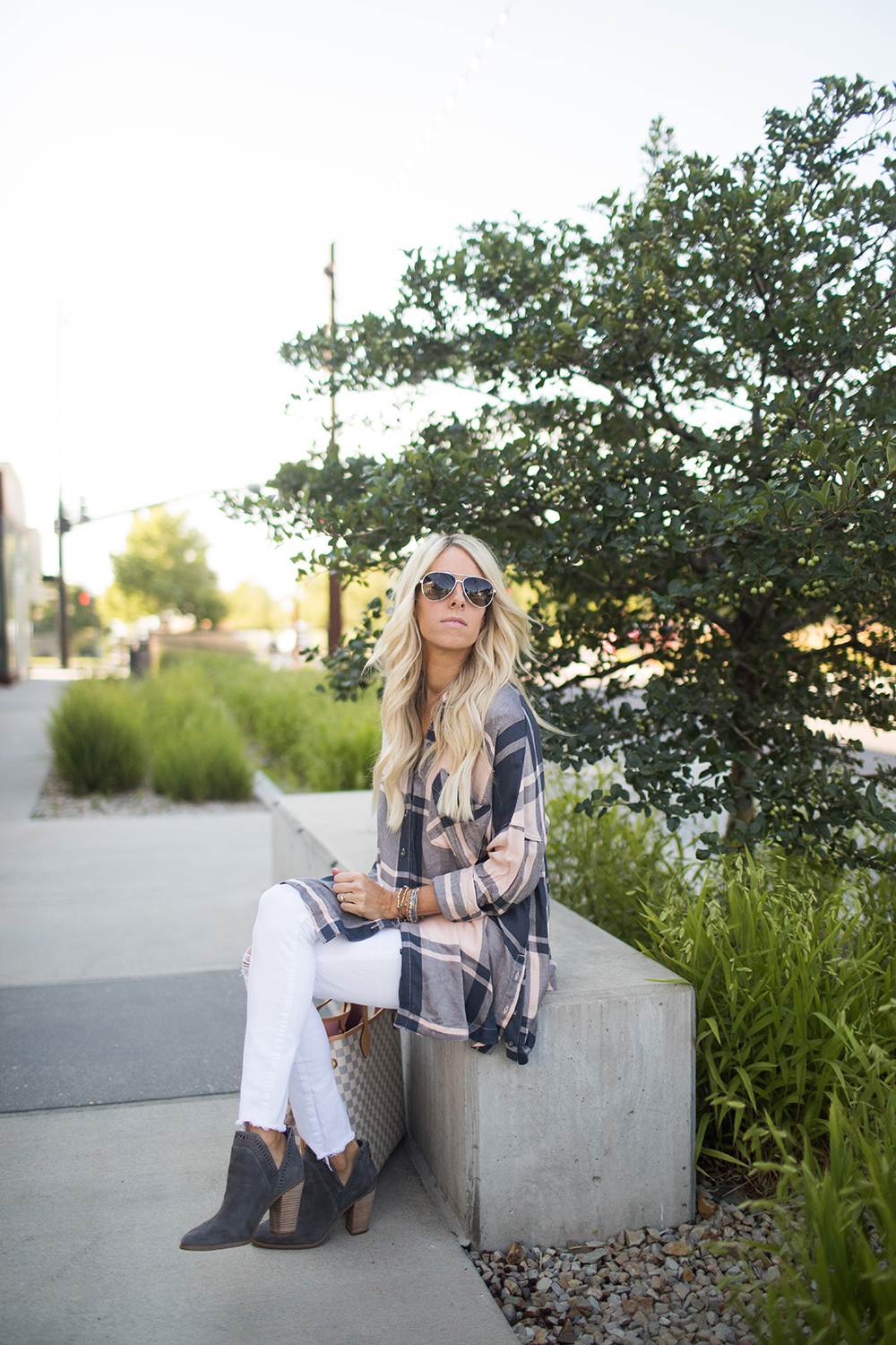 Kailee Wright_Nordstrom Anniversary Sale_Pink Grey Plaid Top