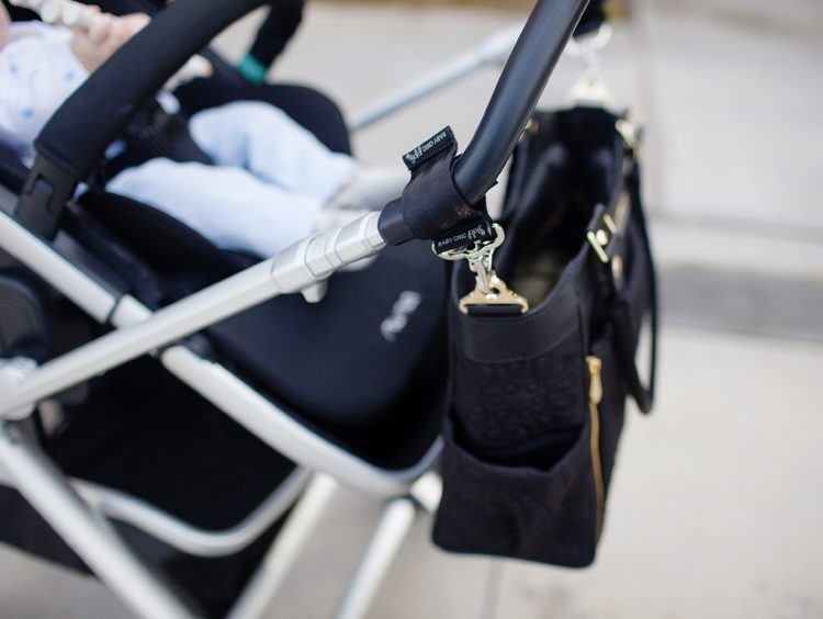 - Stroller Clips : a ton of you have asked about the stroller clips I use, and these are it!! I have tired about 6 different brands and these ones are by far the best to hang any diaper bag onto your stroller!! I love that it makes getting to all your baby’s stuff so much easier + by hanging your bag it frees up your bottom stroller basket.