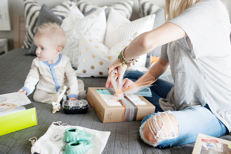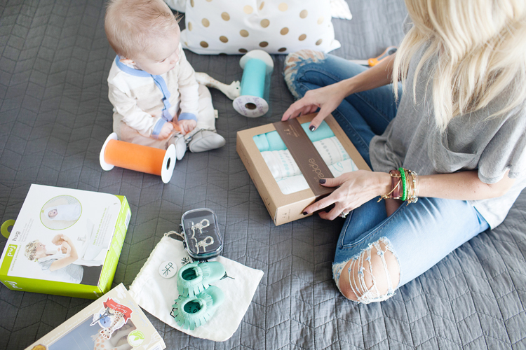 - Freshly Picked Moccs : these tiny shoes are so soft and actually stay on baby’s feet!! Houston has quite a few pair, because I honestly love them so much!! The perfect little gift for any babe.