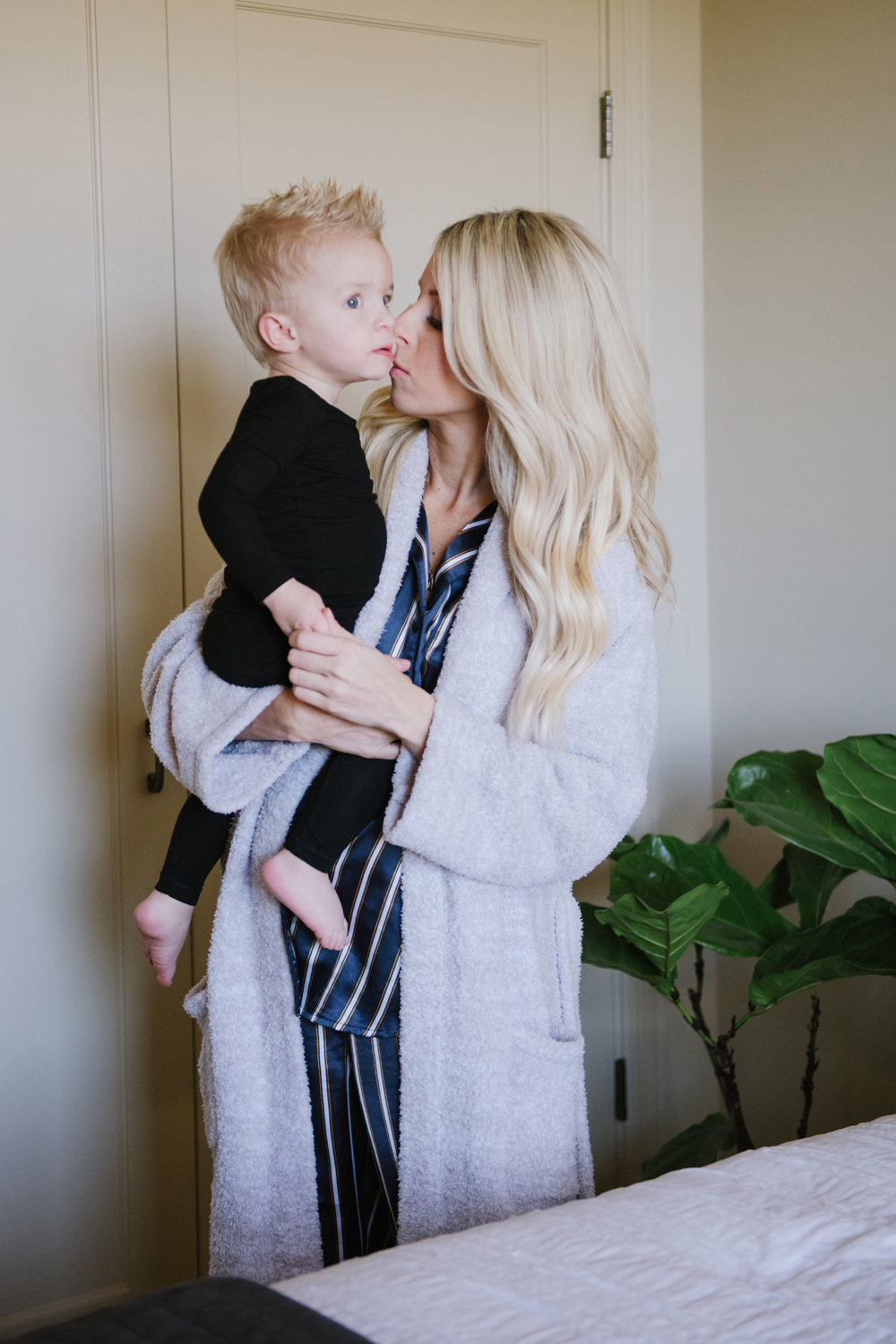 I’m really trying to spend my mornings focused on Houston and giving him the extra one on one attention he needs. Just like holding him (because it seems like I’m always holding the baby) reading to him + we are working on his talking. So basically we hang out in our pajama’s most of the morning. My sweet mom got me these pajamas when I had Harper and I am loved them so much that I ended up snagging these satin pajamas from Nordstrom + my new robe – because let’s just say my last one needed to be replace.If you follow along on my Instagram and you’ve watched my Instagram stories I’m sure you’ve noticed I basically live in my robe, and I’m okay with it!! My family totally makes fun of me and my robe obsession but I don’t even care. haha.